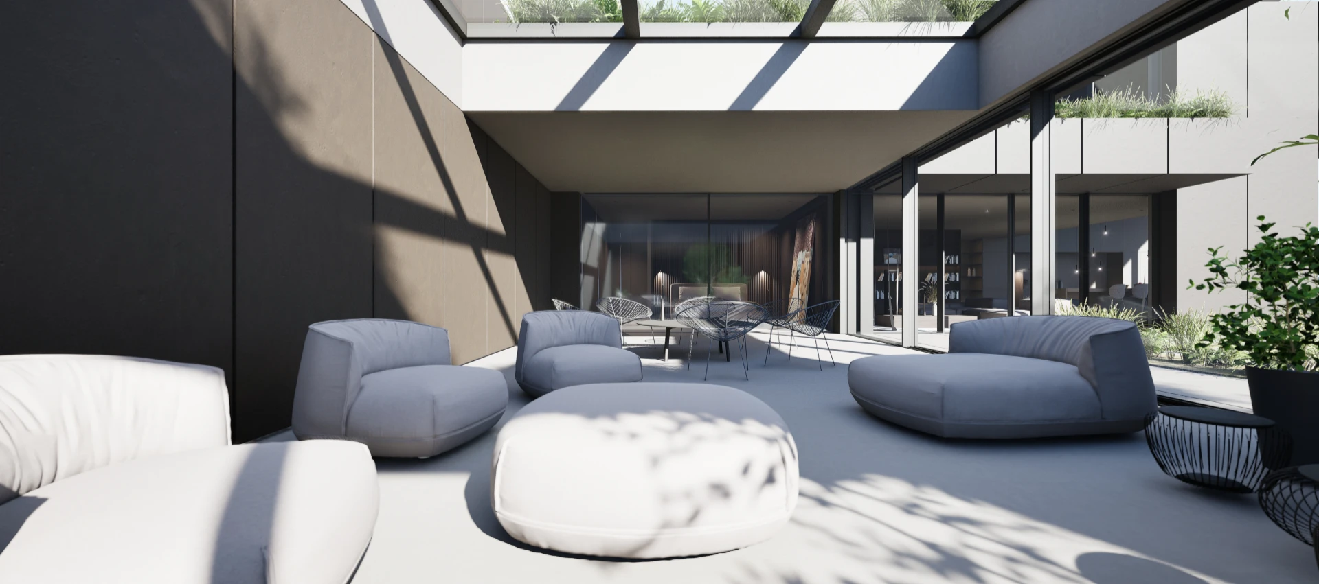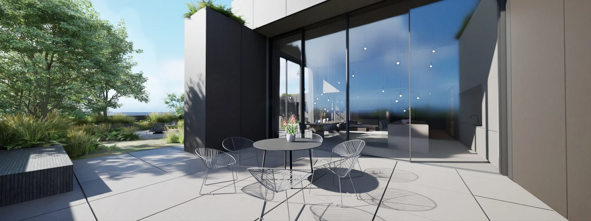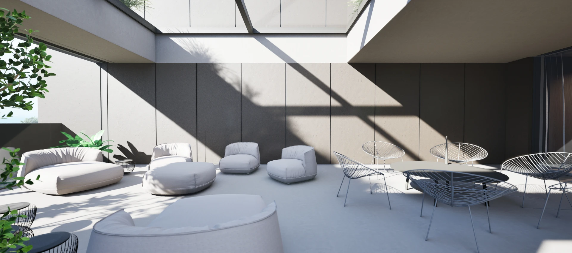 Nasze zadanie polegało na stworzeniu harmonijnej przestrzeni do mieszkania na dachu budynku. Wyzwanie to było trudne z przestrzenno-konstrukcyjnych powodów. Przestrzeń dzienną podzieliliśmy na część kuchni i jadalni (wysoką) i salon (niską). Taka dyspozycja ma za zadanie strefować wrażenie intymności. Strefa wysoka otwarta na tarasy mieści dzienne aktywności użytkowników. Strefa niska, poprzez przytulność przestrzeni gromadzi bardziej intymne aktywności wieczorne.