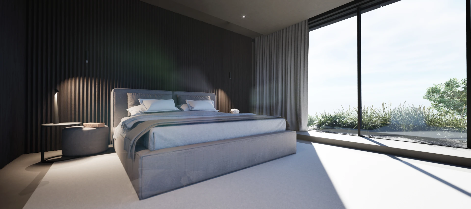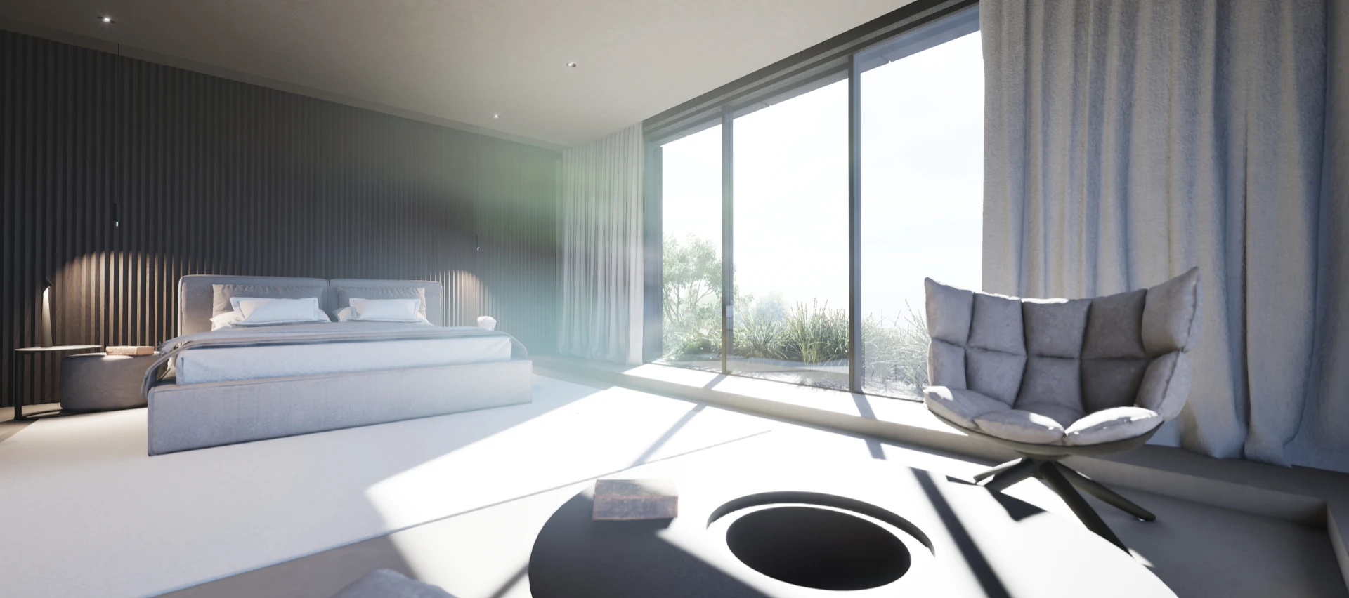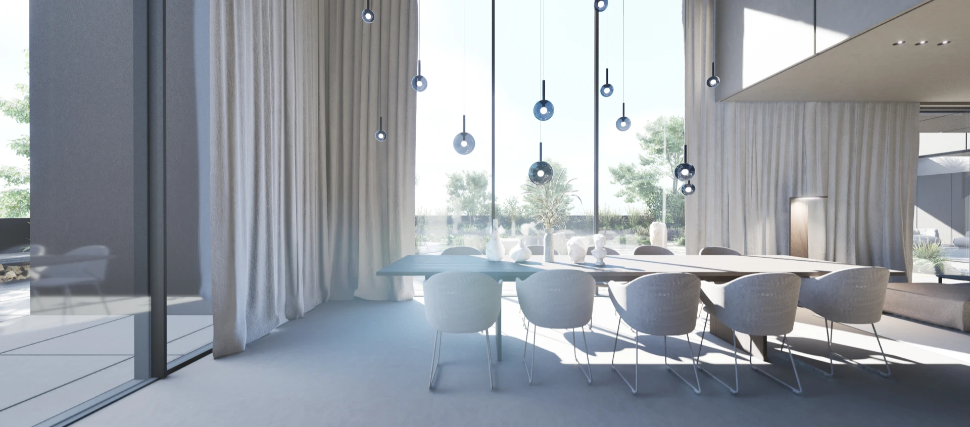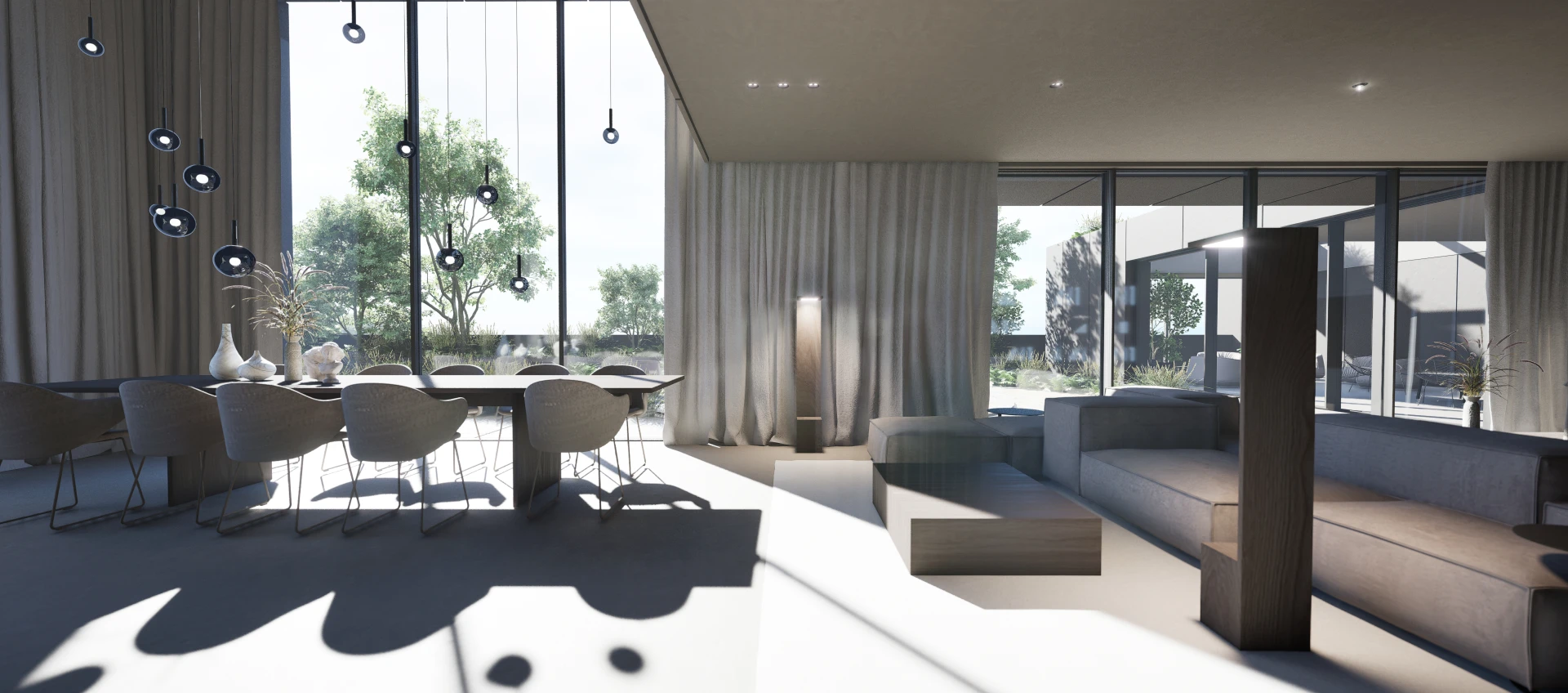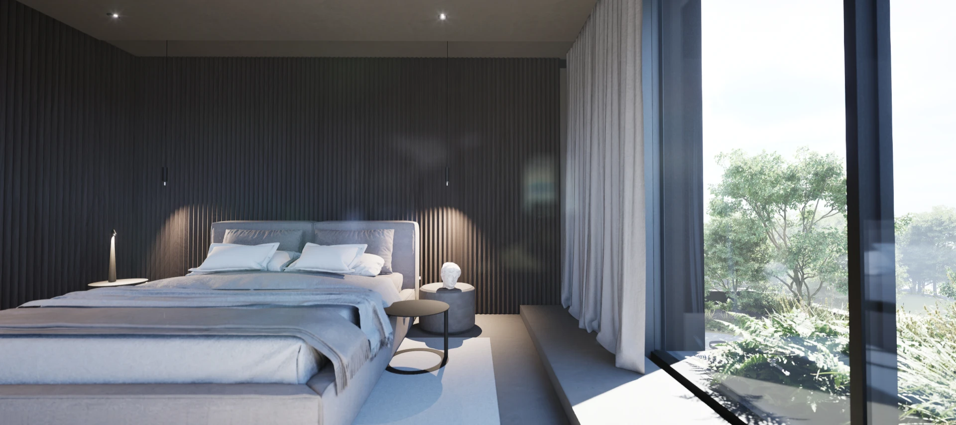 Stosowane materiały harmonijnie dobrane tworzą tło dla życia. Brak mocnych kolorów, naturalne faktury materiałów, jednolita paleta kolorów naturalnego beżu i szarości tworzą przestrzeń 'spokojną’ odpowiednią dla odpoczynku.