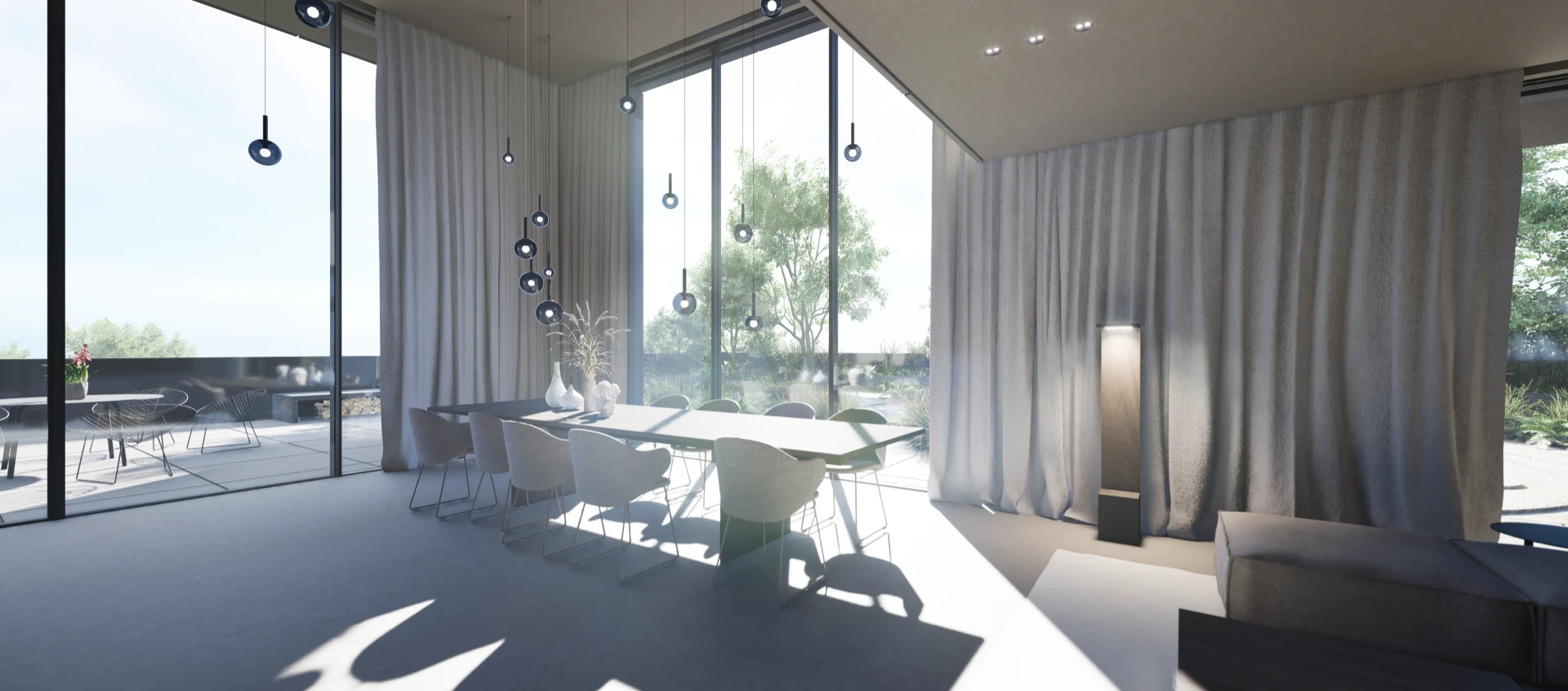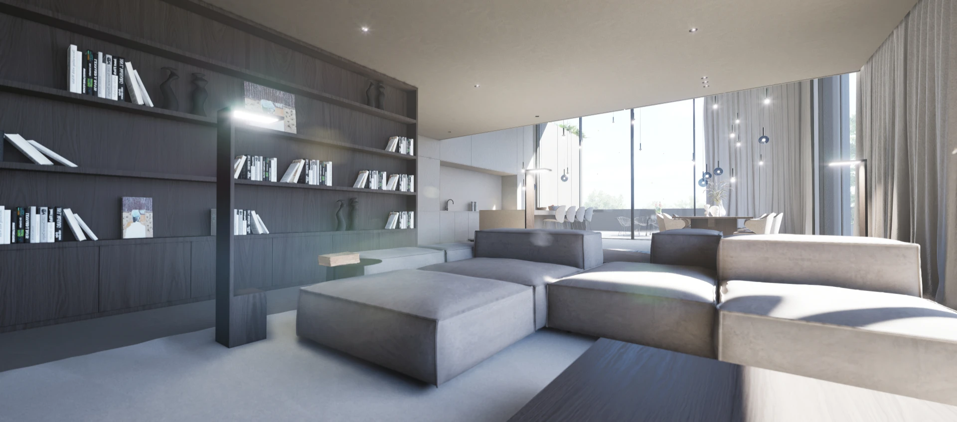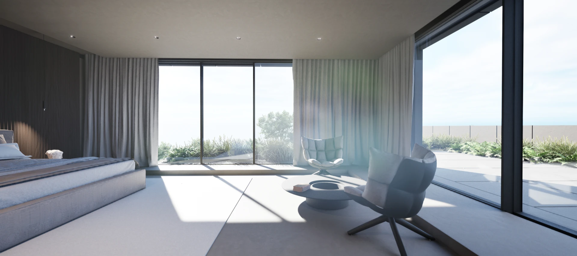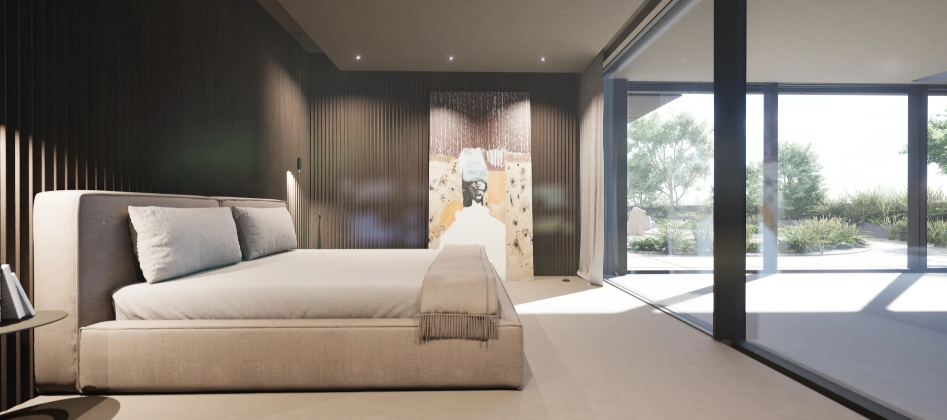 Stosowane materiały harmonijnie dobrane tworzą tło dla życia. Brak mocnych kolorów, naturalne faktury materiałów, jednolita paleta kolorów naturalnego beżu i szarości tworzą przestrzeń 'spokojną’ odpowiednią dla odpoczynku.