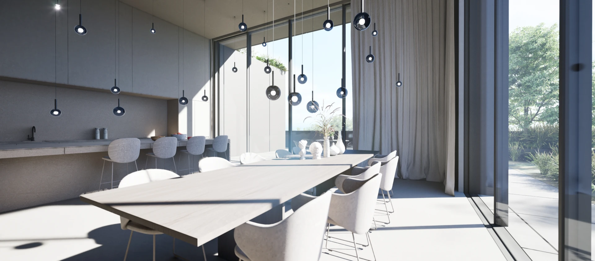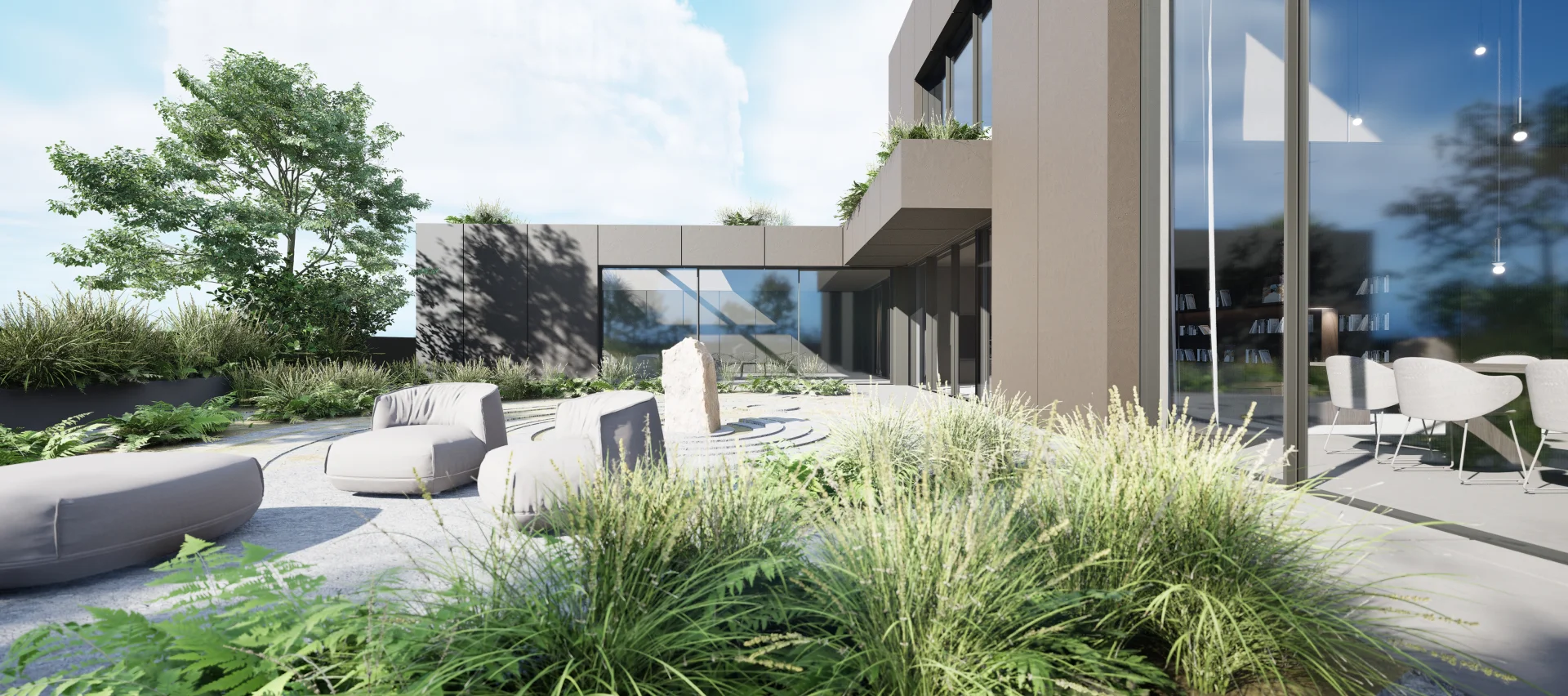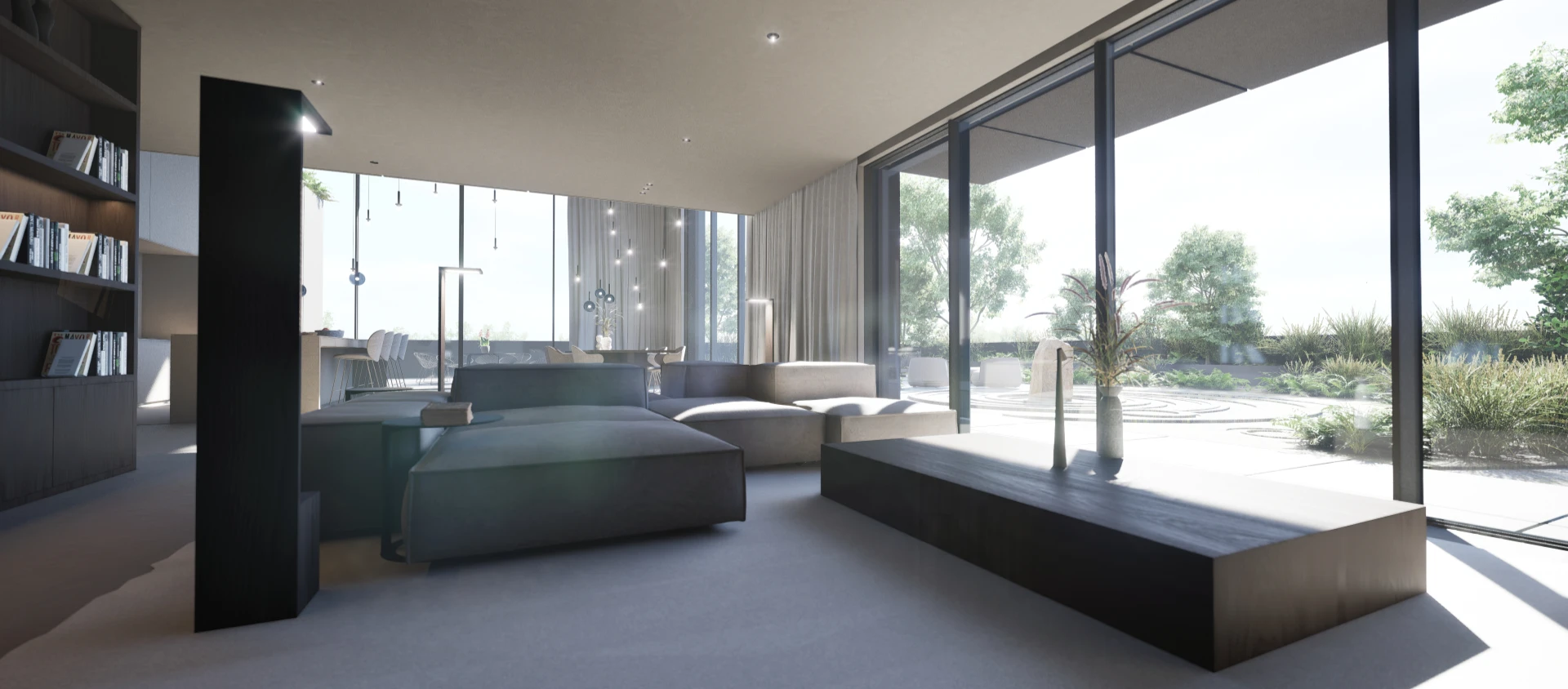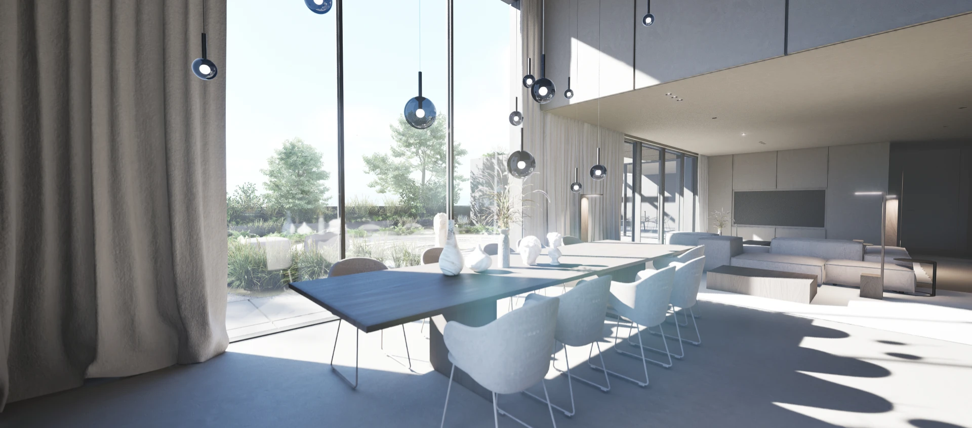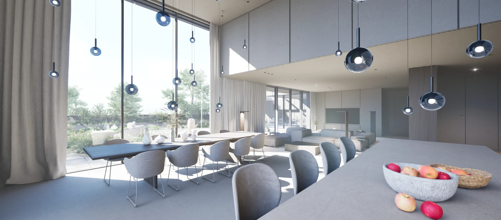 Stosowane materiały harmonijnie dobrane tworzą tło dla życia. Brak mocnych kolorów, naturalne faktury materiałów, jednolita paleta kolorów naturalnego beżu i szarości tworzą przestrzeń 'spokojną’ odpowiednią dla odpoczynku.